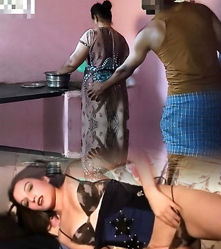 Aunty was working in the kitchen when I had orgy with her