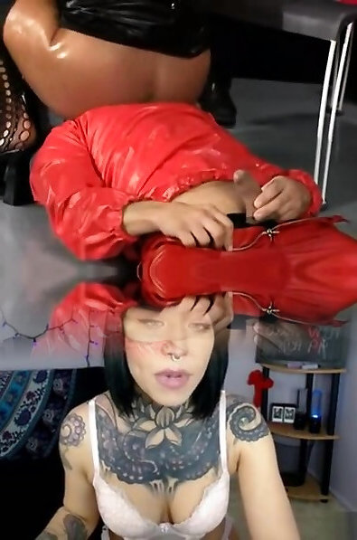 kleine thailändische muschi wird von oben und unten geschlagen, während sich die zierliche süße auf einem weißen schwanz eincremt