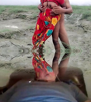 indische frau im traditionellen outfit wird im freien in mund und muschi gefickt