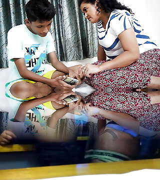ich sah mir ein pornovideo am telefon im schlafzimmer an und hielt den penis in der hand tamilische tante bavana kam schockiert herein, ich zog sie und ha
