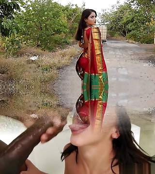indische frau im traditionellen outfit wird im freien in mund und muschi gefickt