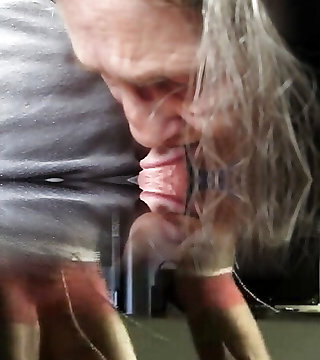 Fine cock gargling from granny Angela, she delights with the cock in her mouth.