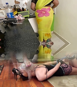 Andhra Indian Maid Getting Plumbed In Kitchen