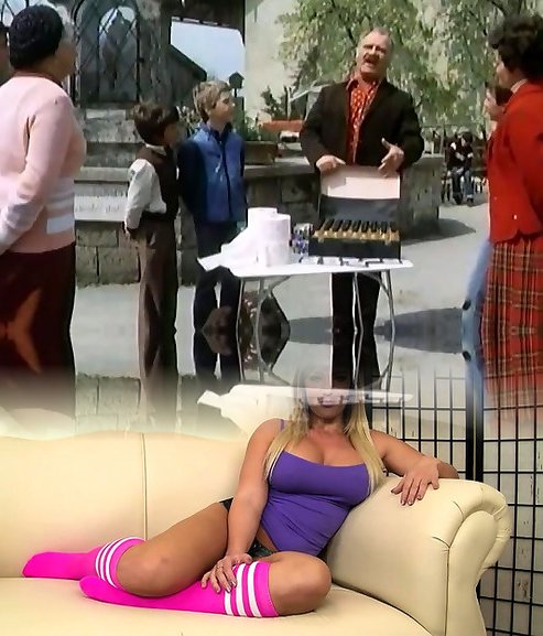 Huge-boobed teenie sneaking into the toilet and screws grandpa