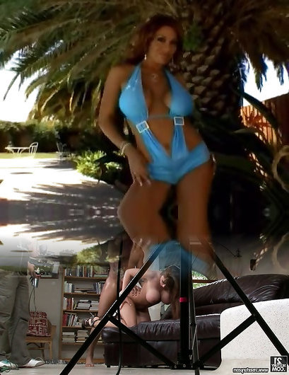 Giant jugged gonzo mega-bitch Regina Moon gets two spunk-pumps at the same time