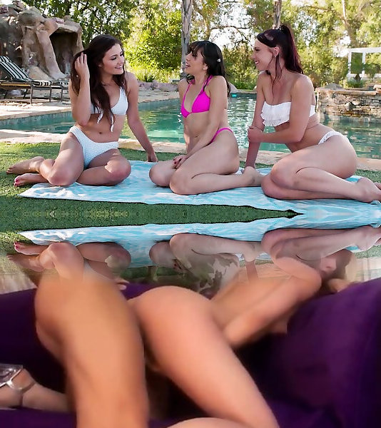 Outdoor lesbo threeway by the pool - Aidra Fox and Adria Rae