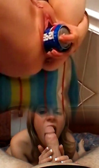 Insane and unrighteous inexperienced white nymph jamming soda can in her cooter