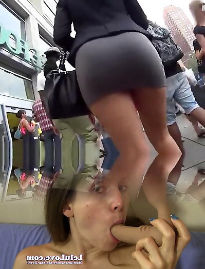 Lovely bum woman in taut short micro-skirt upskirt