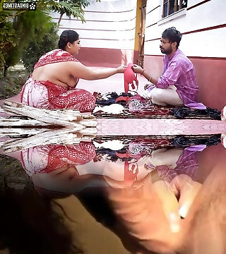 Anita yadav bathing outside with romp